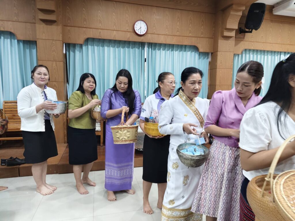 ช่วงเช้า (เวลา 06.30 น.)ผู้บริหารการศึกษา ผู้บริหารสถานศึกษา ข้าราชการครู และแขกผู้มีเกียรติ พร้อมกัน ณ ห้องประชุมเทพบุญเติมพิธีบูชาพระรัตนตรัย พระสงฆ์สวดมนต์