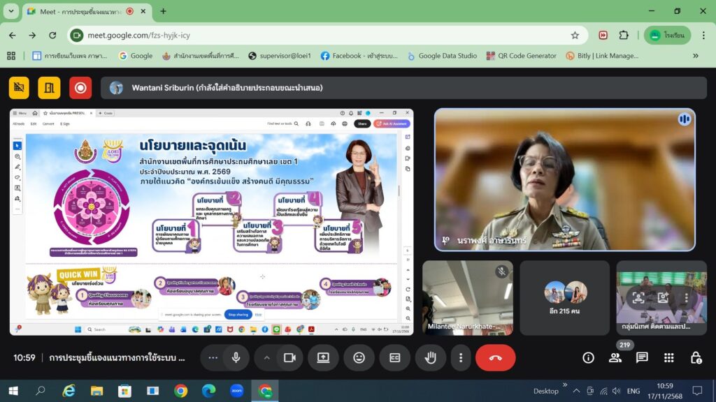 นำโดย นางแพวิพา ภูสงัด ผู้อำนวยการสำนักงานเขตพื้นที่การศึกษาประถมศึกษาเลย เขต 1 พร้อมด้วย นายนพดล ศรีขัดเค้า รองผู้อำนวยการสำนักงานเขตพื้นที่การศึกษาประถมศึกษาเลย เขต 1 ดร.วารุณี ทีนา ผู้อำนวยการกลุ่มนิเทศ ติดตาม และประเมินผลการจัดการศึกษา นายนราพงศ์ อาษารินทร์ และนางสาววันทนีย์ ศรีบุรินทร์ ศึกษานิเทศก์ สังกัดสำนักงานเขตพื้นที่การศึกษาประถมศึกษาเลย เขต 1 ประชุมชี้แจงแนวทางการใช้ระบบ NT Access ในการประเมินความสามารถด้านการอ่านของผู้เรียน (RT) ชั้นประถมศึกษาปีที่ 1 และการประเมินคุณภาพผู้เรียน (NT) ชั้นประถมศึกษาปีที่ 3 ปีการศึกษา 2568 ในรูปแบบออนไลน์