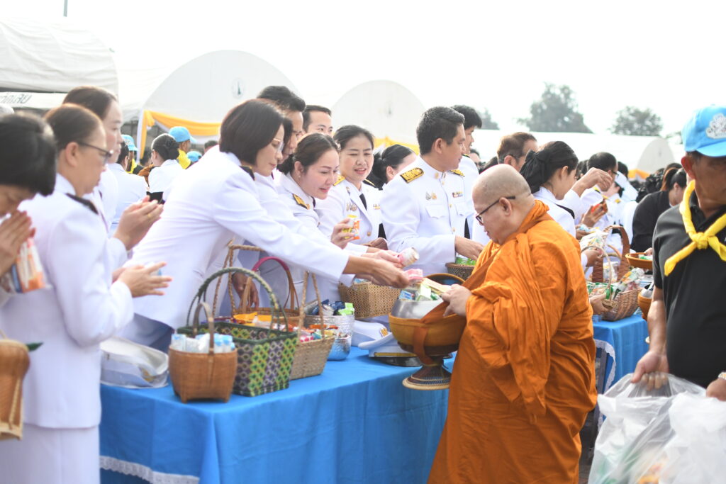 ทำบุญตักบาตรพระสงฆ์และสามเณรจำนวน ๘๙ รูป เพื่ออุทิศถวายเป็นพระราชกุศล