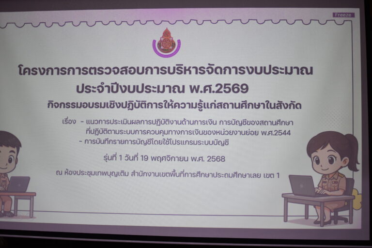E-News 📣 สพป.เลย เขต 1 เปิดการอบรมเชิงปฏิบัติการตรวจสอบการบริหารจัดการงบประมาณ ประจำปี 2569 รุ่นที่ 1พุธ. พฤศจิกายน 19, 2568พุธ. พฤศจิกายน 19, 2025